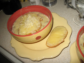 It was a good thing I decided earlier that day to make some hot homemade soup! Only my second soup I've ever made (the first being a pumpkin bisque I made last year, sadly, long before the conception of my food blog).  This time I made a French Onion Baked Potato Soup.